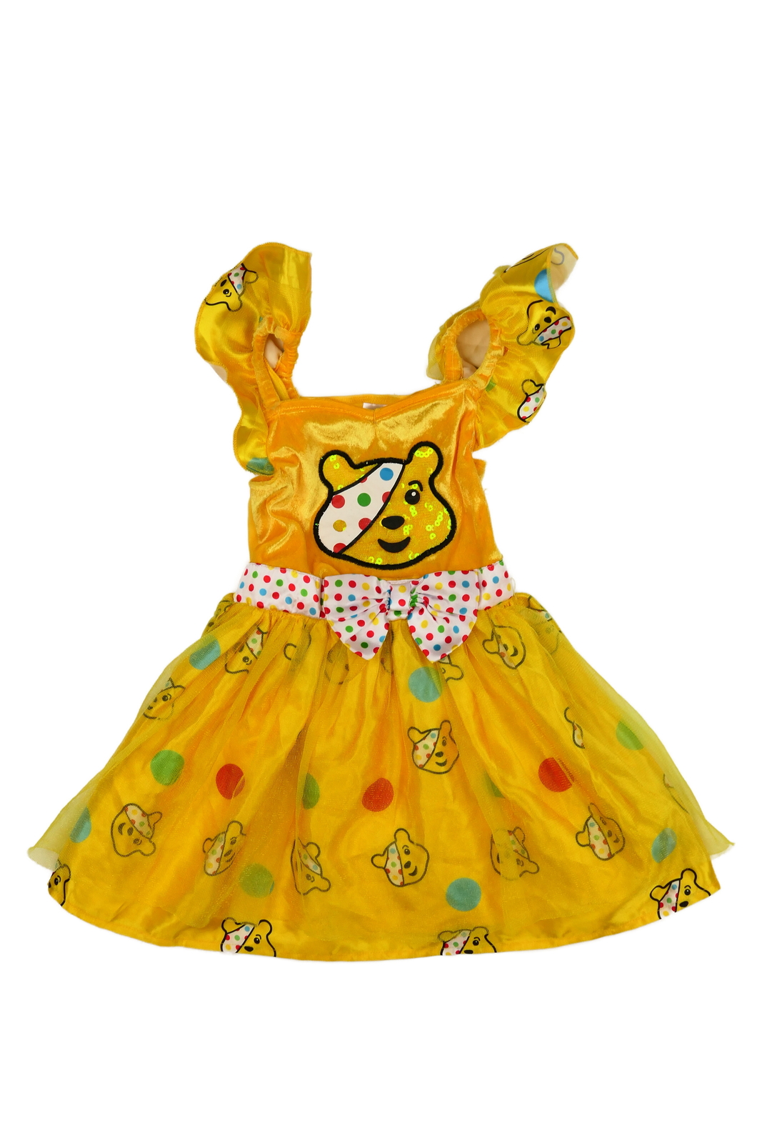 Žluté karnevalové šaty s méďou George (89 Kč)