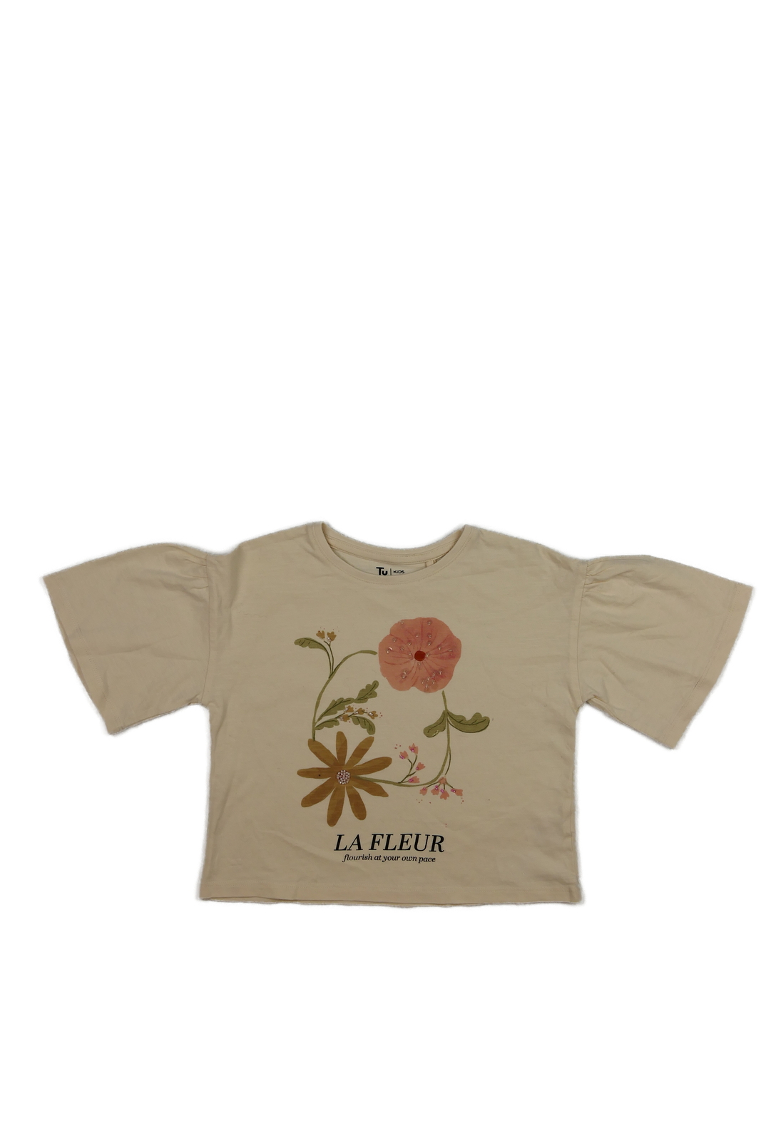 Žluté kratší triko s květinou Tu (99 Kč)