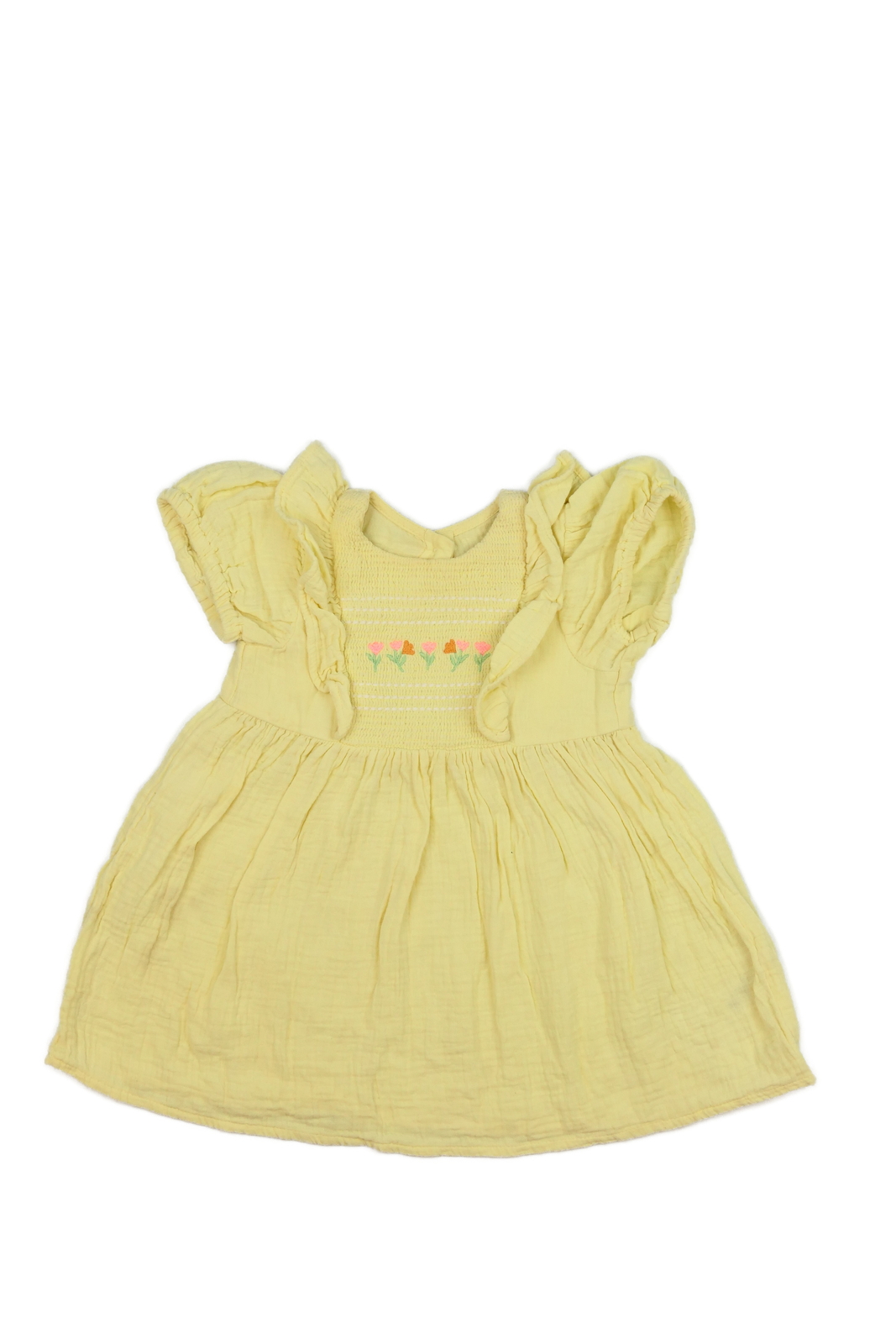Žluté šaty s květinami a volánky Nutmeg (89 Kč)