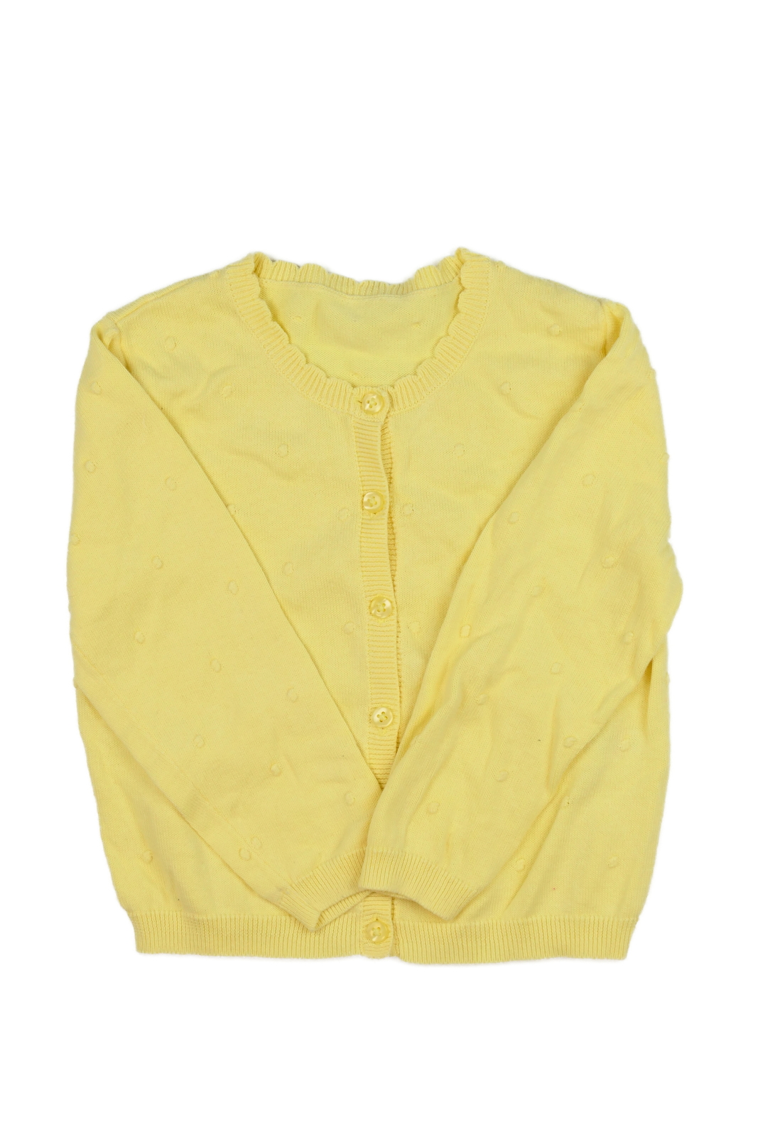 Žlutý propínací svetřík s nopíky (109 Kč)